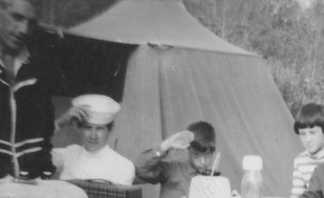 une tente 'tourist' mesurant 8' x 8', les 4 filles y couchaient. Papa